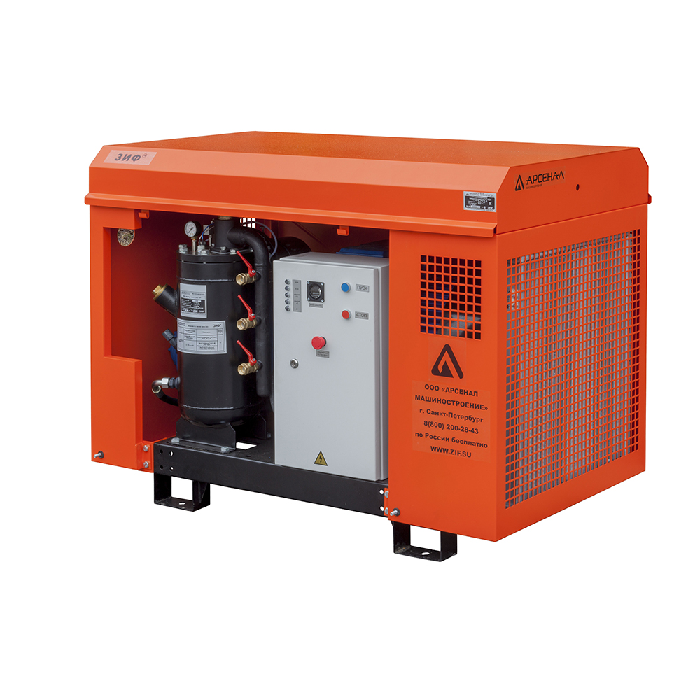 Электрические станции ЗИФ-СВЭ без кожуха могут быть полезны, когда размещение компрессора в производственном помещении по различным причинам невозможно или неудобно.